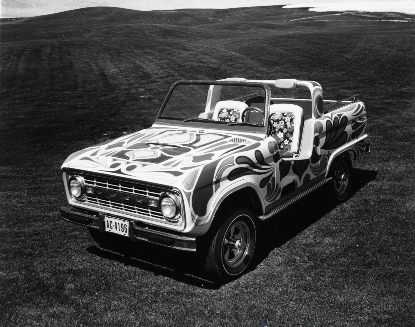 The Bronco Wildflower would have caught many eyes had it been produced. True to its time, it featured a “groovy” color palette and swirls of flowered designs. Even the seats featured a similar pattern.