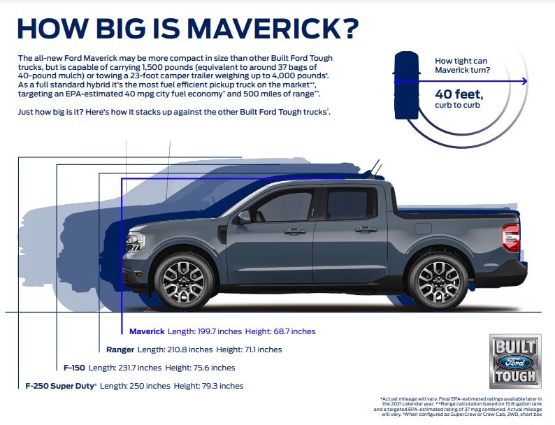 So, how does the Maverick size up to the Ford Truck Family? View the infographic below to see the comparison.